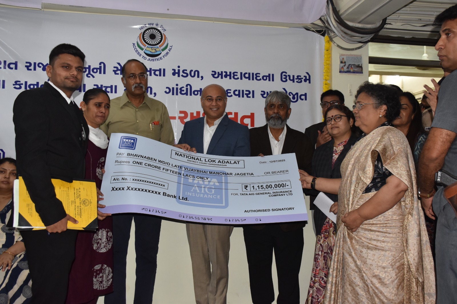 મનુષ્યનું જીવન ખૂબ જ અણમોલ છે, તેની સરખામણીમાં અન્ય કોઈ પણ ચીજ તુચ્છ લાગે છે.પરંતુ ક્યારેક સમય સંજોગે એવા હાલાત ઉત્પન્ન થાય છે જ્યારે જીવ ગુમાવનારના પરિવારને વળતર માટે કોર્ટના દરવાજા ખખડાવવા પડે છે. આવો જ એક કિસ્સો એટલે લીંબડીયા કેનાલ બ્રીજ પાસે સાત માસ પહેલા કાર અકસ્માતમાં મૃત્યુ પામેલ યુવકનો હતભાગી પરીવાર! વાહન અકસ્માતના આ રીતના કેસોના નીકાલ માટે શનીવારે ગાંધીનગર સહીત દેશભરમાં રાષ્ટ્રીય લોક અદાલત યોજાઈ હતી. ત્યારે વર્ષ ૨૦૨૪ માં લીંબડીયા કેનાલ બ્રીજ પાસે ઉભેલી ટ્રકમાં કાર ઘુસી જતા ૩૫ વર્ષના યુવકનું મૃત્યુ થયુ હતુ. આ કેસમાં લોક અદાલતમાં બન્ને પક્ષોનું સમાધાન થયુ હતું. કેસના નીકાલના ભાગ રૂપે મૃતક વિજય જગેટીયાના પરીવારને હાઈકોર્ટ જસ્ટીસ ના હસ્તે રૂા. ૧.૧૫/-કરોડના વળતરનો ચેક આપવામાં આવ્યો હતો.