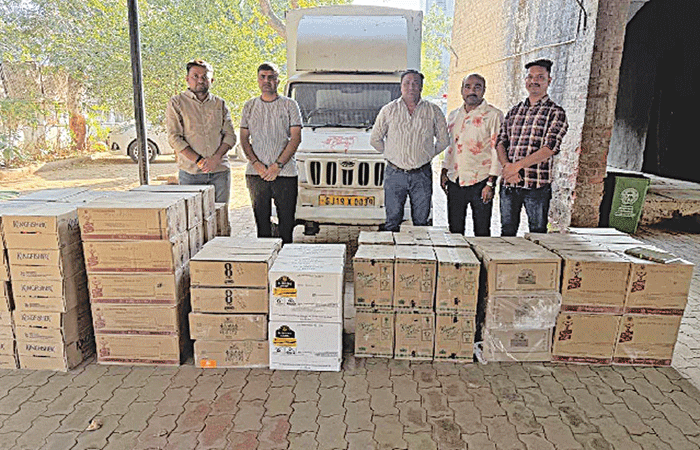 गांधीनगर रेंज डीआईजी (DIG) वीरेंद्र सिंह यादव और जिला पुलिस अधीक्षक (SP) रवि तेजा वासमशेट्टी के निर्देश पर, पुलिस की टीमें शराब की तस्करी (Smuggling) और बिक्री के साथ-साथ जुआ जैसी गतिविधियों पर भी लगाम कस रही हैं। एलसीबी टू (LCB II) के पुलिस इंस्पेक्टर (Inspector) एच.पी. परमार को मिली खुफिया जानकारी (Tip-off) के आधार पर, टीम ने झाँक जीआईडीसी के ‘कड़ादरा वाइब्रेंट प्राइम एंड पार्क’ के प्लॉट नं. 159 पर स्थित एक गोदाम पर छापा मारा। छापे के दौरान, गोदाम से एक बंद बॉडी की महिंद्रा बोलेरो (Mahindra Bolero) पिक-अप डाला (Pick-up Dala) बरामद हुआ। पुलिस ने इसका पिछला लॉक खोलकर जाँच की तो उसमें विदेशी शराब और बीयर (Beer) का भारी जत्था मिला। पुलिस ने कुल 2,340 बोतलें विदेशी शराब-बीयर जब्त की हैं। शराब और पिक-अप डाला सहित कुल ₹18.32 लाख का माल जब्त किया गया है। पुलिस ने गोदाम के मालिक समेत दो लोगों के ख़िलाफ़ मामला दर्ज (Case Registered) कर उनकी तलाश शुरू कर दी है।