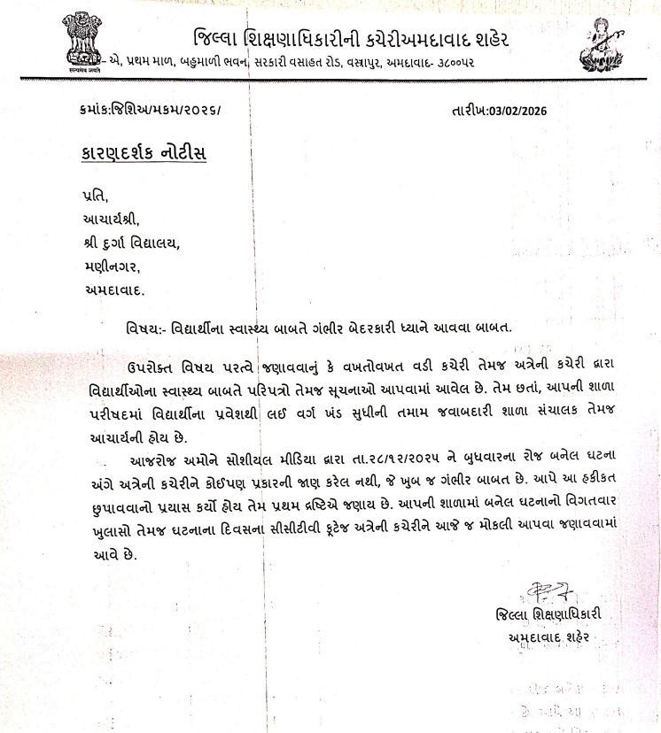 अहमदाबाद के मणिनगर स्थित दुर्गा विद्यालय में कक्षा 6 के दो छात्रों के बीच हुई मामूली बहस ने तब तूल पकड़ लिया, जब एक छात्र पर दूसरे की पानी की बोतल में संदिग्ध पदार्थ मिलाने का आरोप लगा। शुरुआत में यह दावा किया गया था कि बोतल में लुगदी और डामर (Tar) का मिश्रण मिलाया गया है, जिससे छात्र की तबीयत बिगड़ गई। हालांकि, पुलिस जांच और स्कूल प्रशासन के स्पष्टीकरण (Clarification) के बाद यह सामने आया कि यह घटना 28 जनवरी की है। छात्र ने बोतल में डामर नहीं, बल्कि कपूर (Camphor) की गोलियां डाली थीं। खुशबू आने पर पीड़ित छात्र ने शिक्षक को इसकी सूचना दी थी। एहतियात के तौर पर छात्र को बाल रोग विशेषज्ञ (Pediatrician) के पास ले जाया गया, जहाँ उसकी रिपोर्ट सामान्य आई और वह अब पूरी तरह स्वस्थ है।